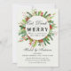 Holly Christmas Floral Wreath - Mange, Bois, et Be Joyeux Calligraphie Typographie Script Christmas Party Invitation. Carte de fête de Noël de famille de vacances de saison Réunion de Noël.