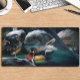Deux canards à bois dans un étang dans une forêt, des arbres et des rochers tout autour de l'étang tandis que les canards à bois mâle et femelle profitent de l'étang
