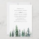 L'élégante invitation à la fête d'engagement hivernale comprend une rangée de pins aquarellés dans des tons riches de chasseurs et de vert de forêt. Personnalisez avec vos détails de célébration fiançailles en lettrage noir chic. Un beau choix pour des soirées d'hiver élégantes en montagne, en forêt ou en forêt.