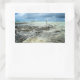 Un autocollant photo rectangulaire d'un arbre mort posé sur une barrière de corail noir attend la décomposition au milieu de la lagune bleue à l'image parfaite d'un atoll du Pacifique sur l'île de Polynésie française de l'archipel de Tahiti.
