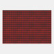 ensemble de trois feuilles de papier d'emballage d'aquarelle, y compris les baies d'hiver rouges, les brindilles / branches et la chute de neige, ainsi que le chèque classique rouge et noir en plaid de buffle.