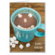 Boisson chocolat chaud avec marshmallow face heureuse dans une tasse turquoise pour solstice d'hiver