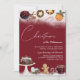 Une invitation à la fête de Noël ou à la fête du dîner. Sur un arrière - plan rouge festif avec de la neige, des plats de Noël tels que du vin chaud, des tartes hachées, du pain d'épice, du gâteau de Noël et des sucres de canne sont présentés.