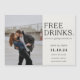 Annonce amusante et décontractée Save the Date avec "Free Drinks" dans un script amusant. Annoncez à vos amis et à votre famille que vous vous mariez ! Customisez avec vos informations et votre photo.