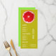 Un modèle de menu coloré et mignon pour un bar à boissons, un bar à jus, une boutique de fruits ou une boutique d'aliments santé. Ce menu mignon a une illustration d'art originale adorable de Sacha Grossel d'une tranche de pamplemousse avec un thème d'agrumes sur un fond personnalisable vert citron et jaune. Le texte peut être personnalisé pour répondre à vos besoins.