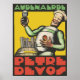 Vous avez besoin d'aide pour créer une autre taille ? (en pouces ou centimètres). Contactez-nous via le bouton contact ci-dessus. Propre art vectoriel, inspiré d'une carte postale art déco (fin des années 1920). Un personnage, ressemblant à une poupée en bois, déguste une bière (ou 7).
