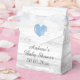 Boite de baby shower de fête de garçon en bois blanc. Ballotins élégants en forme de tente pour célébrer le nouveau bébé garçon. Design rustique avec texture arrière - plan en bois, coeurs vintages bleus et silhouette de bocal en maçon. Parfait pour remercier les invités venus. Une partie des invitations et autocollants correspondants.