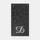 Personalisierte, elegante, moderne Kalligraphie-Monogramm. Sie können den Stil, die Größe und die Farbe des Schriftartes ändern. Der schwarze Glitzer ist im Foto mit einem dunklen Hintergrund in Grautönen und Weiß bedruckt. Erstellen Sie Ihre eigenen Imitate Glitzer Papierservietten für Ihre besondere Veranstaltung. Der Glitzer wird ein gedrucktes Foto und nicht echte glattere Flocken sein.
