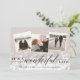 Elégant carte photo de vacances présente trois photos carrés dans un plan collage, avec un bokeh léger flare superposé pour un look festif et bubbly. "C'est une vie merveilleuse" est superposé en écriture noire et en lettres de bloc, avec votre(s) nom(s) et l'année en dessous. Les cartes sont retournées à un arrière - plan à motif botanique neutre.
