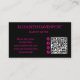 Wow your customers with this business card featuring an elegant typography design in bold black and hot pink together with your logo, plus a photo of your choosing. On the back personalize all your contact information and showcase your social media handles together with a QR code for your bookings or site.