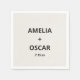 This custom wedding napkin features a soft ivory background with bold black typography of couple's names and wedding date. Customizable with your names and date. For couples who want a clean, minimalist, bold wedding napkin for reception tables.