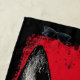 Striking black and white Bull Terrier illustration set against a powerful red backdrop. Clean linework and strong contrast create an intense, confident dog portrait with modern graphic impact.