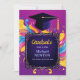 Celebrate your graduate with a vibrant, modern announcement bursting with color and personality. This bold design features energetic swirls, a celebratory cap icon, and a clean central frame that highlights your student’s name and achievements. Every line of text is fully customizable—perfect for high school, college, or any milestone worth cheering for. A standout choice for families who want something bright, joyful, and unforgettable.