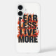 Ignite your spirit and live life to the fullest with this powerful "Fear Less, Live More" graphic. The text features a bold, fiery texture, creating an energetic and edgy look that's full of passion. It's the perfect motivational statement for anyone ready to embrace adventure and overcome their fears.