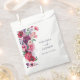Senden Sie Ihren Gästen Zuhause mit einem schönen Sake und nutzen Sie diese individuell gestaltbare Geschenktasche mit den Namen der Braut und des Bräutigams, dem Hochzeitstag und dem lebhaften Blumenstrauß in den Schmucktönen. Diese Tasche ist perfekt für Hochzeiten zu jeder Jahreszeit und bietet eine charmante Touch für gemütliche Herbst- und Winterfeiern sowie Hochzeiten im Frühling und im Sommer. Mit einem raffinierten Design und umfassenden Personalisierungs-Optionen sorgen diese Wohlfühltaschen dafür, dass Ihre Gäste mit einem durchdachten und koordinierten Menü von Ihrem besonderen Tag an verlassen werden. HINWEIS: Der Text ist Navy Blue, um die Sammlung zu entsprechen, kann aber leicht geändert werden.