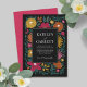 Diese wunderschöne Hochzeitseinladung mit einem handgezeichneten Blumendesign in magentafarbenem Rosa, Orange, Golden Gelb und Smaragdgrün auf schwarzem Hintergrund. Der Stil ist fast Kreide - wie / Pastelltöne. Die Hintergrundfarben auf Vorder- und Rückseite können auf Wunsch angepasst werden. Einfach, elegant, kühl und modern - perfekt für Ihren besonderen Tag!
