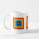 Bold concentric rainbow squares glow on a crisp white background, stacking red, orange, yellow, green, blue and purple in a clean geometric frame that feels retro, playful and modern at the same time, creating a bright optical focal point that instantly catches the eye and radiates uplifting, creative energy.