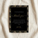 Fügen Sie Ihrer Hochzeitsempfehlung eine Touch Luxus mit diesen personalisierten Dankeschön-Tischkarten hinzu, die einen eleganten schwarzen Hintergrund und ein ausgeklügeltes Farnblattmuster aufweisen. Jede Karte ist wunderschön mit anmutigen Schriften und moderner Typografie gestaltet und schafft eine raffinierte Atmosphäre, die perfekt für Familie und Freunde ist. Platzieren Sie diese Karten an jedem Tisch, um herzliche Dankbarkeit auszudrücken und jedem Gast das Gefühl zu geben, sich mit individuellen Namen und Wertungsnachrichten individuell anzupassen. Der bedruckte Goldeffekt verleiht dem Gast ein elegantes, glamouröses Aussehen und eignet sich ideal für ein stilvolles Fest, bei dem Sie Ihre neue Reise würdigen.