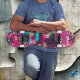 Dieses Skateboard-Design ist ein lebendiges, graffiti-inspiriert Meisterwerk mit einem auffallenden neonrosa Hintergrund mit abstrakten urbanen Motiven und überlagerten Pinselstrichen in aquamarin, beige und schwarz. Die kühnen Farben und die ausdrucksvollen Texturen erinnern an ein rebellisches Straßenkunstbild, das sich perfekt für Skater eignet, die gewollt haben, eine Aussage zu machen. Dieses Deck spiegelt den Graffiti-Geist mit einer modernen Drehung wider und verbindet schlaue urbane Elemente mit hellen, auffälligen Farbtönen. Ideal für Skater, die eine furchtlose, kühne Ästhetik annehmen.