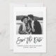 Mit dieser individuell gestaltbaren Ankündigung Datum freihalten-Karte können Sie Ihre Hochzeitszeit bei Familie und Freunden bekannt geben. Es zeichnet sich durch kühnen Kalligraphie und einfache Typografie aus. Personalisieren Sie diese Kalligraphie Save the Date Postcard, indem Sie Ihre eigenen Foto- und Hochzeitsdetails hinzufügen. Dieses Foto Save the Date Postkarte ist auch in anderen Farben erhältlich.