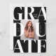 Feiern Sie den Meilenstein des Abschlusses mit dieser modernen und anpassbaren Foto Abschluss Einladung! Es zeichnet sich durch kühne und moderne Typografie aus. Personalisieren Sie diese minimalistische Abschluss-Einladung durch Hinzufügen eines Fotos, Name, Schule und andere Details. Diese Abschluss-Einladung ist in anderen Farben erhältlich.