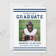 Announce your graduate’s celebration with this classic navy varsity-style graduation party invitation, designed with bold athletic stripes and strong collegiate typography for a timeless and confident look. The front features the graduate’s photo along with their name, school, and graduation year, creating a clean, structured layout that reflects their hard work and achievement. The back showcases a horizontal photo at the top, with space below for graduation party details including the date, time, location, and RSVP information, allowing you to personalize every aspect of the celebration. Perfect for high school and college seniors, student athletes, and sports enthusiasts, this navy photo graduation party invitation offers a polished and memorable way to invite family and friends to honor their milestone.