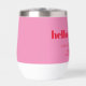 This personalized wine tumbler features bold typography with a playful “hello seventy” message on a bright pink background for a fun, modern celebration look. Customized with a name, date, and location, it’s perfect for milestone birthdays, parties, or weekend getaways. The clean, eye-catching design makes it easy to use at the party and enjoy long after the celebration. A festive and practical keepsake for anyone celebrating turning thirty in style.