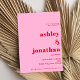 Moderne minimale Hochzeitseinladung mit fett formatierter Typografie in hellrosa und roter Farbe.