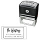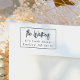 Custom return address stamp with your name in bold script lettering followed by your address in classic serif italics. Around the text there is a bold rectangular frame with rounded corners. This is a self-inking stamp, there is a wooden version available in my store. Visit our store for more return address rubber stamps.