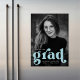 Stilvolle Abschluss-Ankündigungs-Magnete mit dem senkrechten Foto des Absolventen mit "grad" in fett himmlischer Schrift. Personalisieren Sie den Ankündigungsmagnet für den Foto-Abschluss, indem Sie den Namen, das Abschluss-Jahr und die Schule des Absolventen hinzufügen.