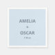 This custom wedding napkin features a soft blue background with bold typography of couple's names and wedding date. Customizable with your names and date. For couples who want a clean, minimalist, bold wedding napkin for reception tables.