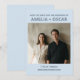 This custom save the date features a soft blue background with bold typography and your engagement photo. Says "SAVE THE DATE FOR THE WEDDING OF" at top with couple's names and photo in center. Bottom includes wedding date, city, and website. Customizable with your photo, names, date, location, and website. For couples who want modern, minimalist, bold save the date cards.