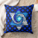 Dieses extra plump & cushy werfen Kissen wird ein echter Ausstand in jedem Zimmer, das Sie platzieren! Leslie Sigal Javoreks populäres Originalgemälde eines wirbelnden, bleihaltigen, farbigen Star aus David aus Glas in lebendigen Farbvarianten von weiß bis tiefkobaltblau, gestützt durch ein dramatisch wiederholendes Muster aus schwarz, ultramarinem und gelbem. Siehe Jewbilees koordinierende Kissen und andere Zuhause-Dekorationsaccessoires.