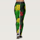 Bold botanical print leggings patterned with red, yellow and green palm leaves on black. There's customisable text across the front waistband, where you can add your own name or slogan
