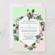 Cette faire-part de mariage est composée de poupées en coton et de jolies fleurs roses, ainsi que d'un cadre élégant pour votre texte. L'arrière - plan est un dégradé vert pâle qui s'estompe jusqu'au rose pâle. Idéal pour les producteurs de coton.