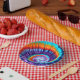 Il ne devient pas plus classique qu'une spirale de teinture arc-en-ciel. C'était l'image centrale d'une gigantesque tapisserie sur mesure teinte de glace que nous avons faite pour un de nos clients et maintenant c'est un design pour vos célébrations. Amusant pour les anniversaires ou toute occasion où vous voulez ajouter des couleurs arc-en-ciel ou un design hippie classique.