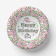 Des bols de fête d’anniversaire rose et vert menthe avec gâteau d’anniversaire et des graphismes en ballon.