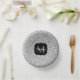 Personnalisez la plaque de papier brillante de fête d'anniversaire avec votre initiale et votre nom. De belles parties scintillant brillantes brillantes en argent girly brillent. Photo des éclats d'argent pas de parties scintillant réelle!