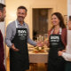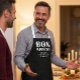 Schürze in französischer Sprache mit den Worten "Bon Appetit" und dem anpassbaren Willkommensausdruck Ihrer Wahl.