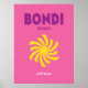 Bondi Beach ist ein beliebtes Ziel in Australien. Es ist bekannt für seine Strand- und Surfkultur. Dieses Bild zeigt ein Sonnenmotiv in Bewegung auf einem rosa Boden.