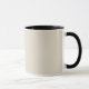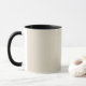 Eine helle, solide Tasse "Bone White" und Black Combo. Bone White ist ein cremefarbenes, eine Farbe ähnlich hellbeige. Klicken Sie auf "Anpassen", um die Farbe zu ändern oder ein Muster oder Design hinzuzufügen. Produkt-Hex-Code: #e3dac9
