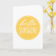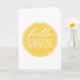 Envoyez un peu de soleil et bonheur avec cette carte de voeux comportant "bonjour la typographie de style d'écriture de soleil" sur le jaune. Masquez l'intérieur pour votre message.