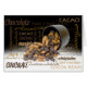 Le design de la couverture est orné de morceaux de chocolat et d'amandes déversés d'une ramekin noire avec un arrière - plan horizontal noir et blanc et un bloc de texte des mots chocolat, chocolat noir et amandes en anglais, allemand et français plus de mots dans une variété de styles, tailles et couleurs de police. Customisez l'accueil intérieur avec votre message ou supprimez le texte.