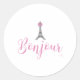 Bonjour-Eiffel Tower Bow Unique Runder Aufkleber