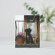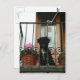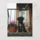 Ce magnifique chien noir à poil long regarde d'en bas depuis le balcon