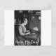 Dites bonjour à toutes vos chères avec cette carte postale avec une photo vintage d'une dame tapant dans sa maison.