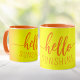 Commencez votre journée par une explosion de soleil en utilisant cette tasse jaune et orange Hello Sunshine. La tasse jaune vif aux accents oranges est ornée d'une typographie moderne qui dit "Hello Sunshine", ajoutant une touche joyeuse à votre routine matinale. Le passage graduel du jaune à l'orange dans l'arrière - plan crée un design dynamique et dynamique qui rappelle le soleil brillant. Sirotez votre boisson chaude préférée dans cette tasse mignonne et élégante, évoquant l'essence de l'été et apportant un sentiment de joie à chaque gorgée. Venez vous imprégner des vibrations modernes et vibrantes de ce charmant mug.