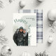 Ces cartes de voeux à plat de 5" x 7" de la nouvelle année disposent d'un espace réservé pour votre photo préférée, votre nom de famille et votre année avec le message, "Bonne année" en grandes lettres qui créent une arche autour de la photo. Le dos a une conception de plaid de coordination.