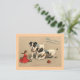 Niedliche Vintage französische Neujahrskarte mit zwei Welpen, die mit einer Puppe und einem Wollball spielen. Die Kartenmeldung lautet "Bonne Annee".