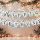 Bonne bannière de l'hiver de l'anniversaire. Flammes de neige en or et en argent et pins. Idéal pour la fête d'anniversaire d'hiver.